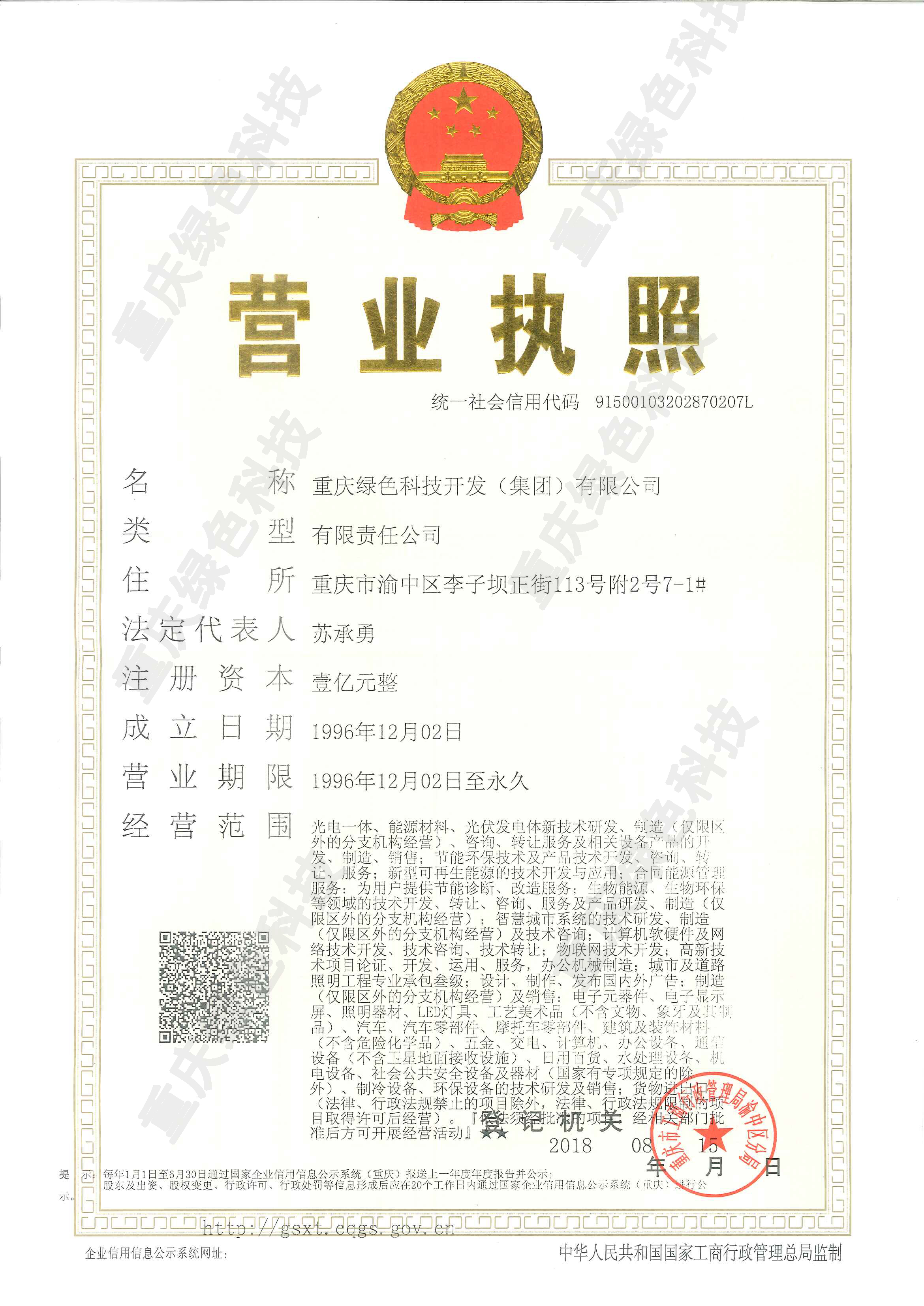 重慶綠色科技開發(集團)有限公司是國家高新技術企業、重慶市LED智能控制技術工程研究中心、重慶市中小企業技術研發中心、重慶市高成長性科技企業。擁有一支專業的多色溫LED智慧照明科研團隊,獲得國家發明等各類自主知識產權專利100余項。公司是以物聯網全光譜多色溫LED智慧路燈及“智慧城市”城市照明夜景燈飾聯動三級管理共享平臺為主要研發方向的現代科技型企業,經營銷售物聯網全光譜多色溫LED智慧路燈系列照明產品和教室照明護眼燈,推廣合同能源管理(EMC)照明節能改造項目、節能減排技術以及節能項目設計、融資、改造,咨詢服務、銷售、工程實施和技術推廣。